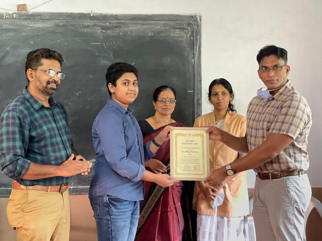 The functions were as per the Covid protocols. Winners from Kannur. Ms. Niranjana Uday received the Merit Award and Master Abhijay Kuttassery the Best Communicator Award. Ms. Sandra Suresh of Palakkad was also conferred the Best Communicator Award.