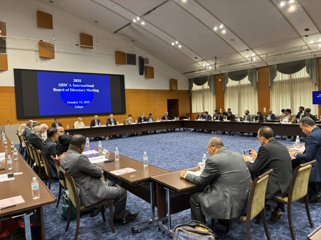 The annual OISCA International Board of Directors Meeting was held on October 15 at the International Conference Room of the National Olympics Memorial Youth Center in Yoyogi, Tokyo. This year, a total of 71 delegates, representatives and observers from 13 countries and regions (Azerbaijan, Bangladesh, Hong Kong, India, Indonesia, Japan, Malaysia, Mexico, Mongolia, Pakistan, Philippines, Taiwan, and Uzbekistan), participated in the meeting.