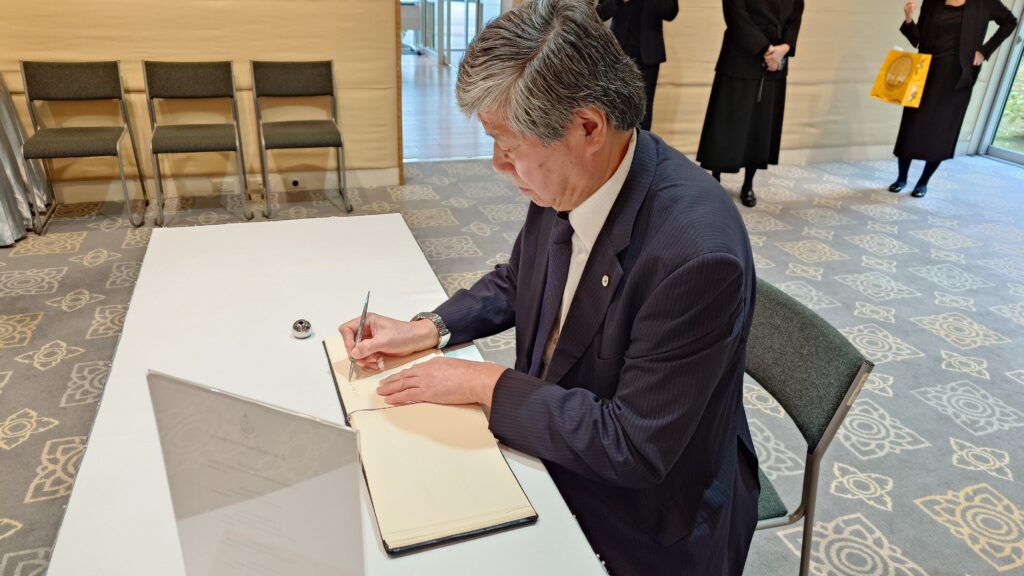 Following the meeting, the OISCA delegation singed the book of condolences for Her