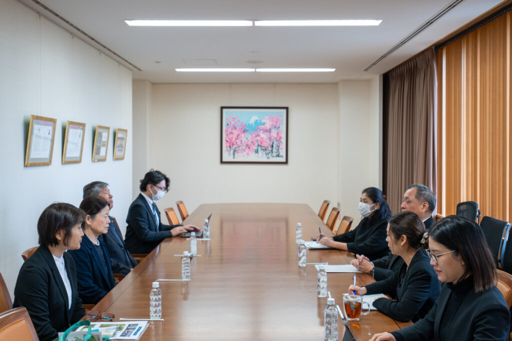 Executive Managing Director, and other staff visited the Royal Thai Embassy in Tokyo and met with H.E. Mr. Witchu Vejjajiva, Thai Ambassador, to convey gratitude for the donation